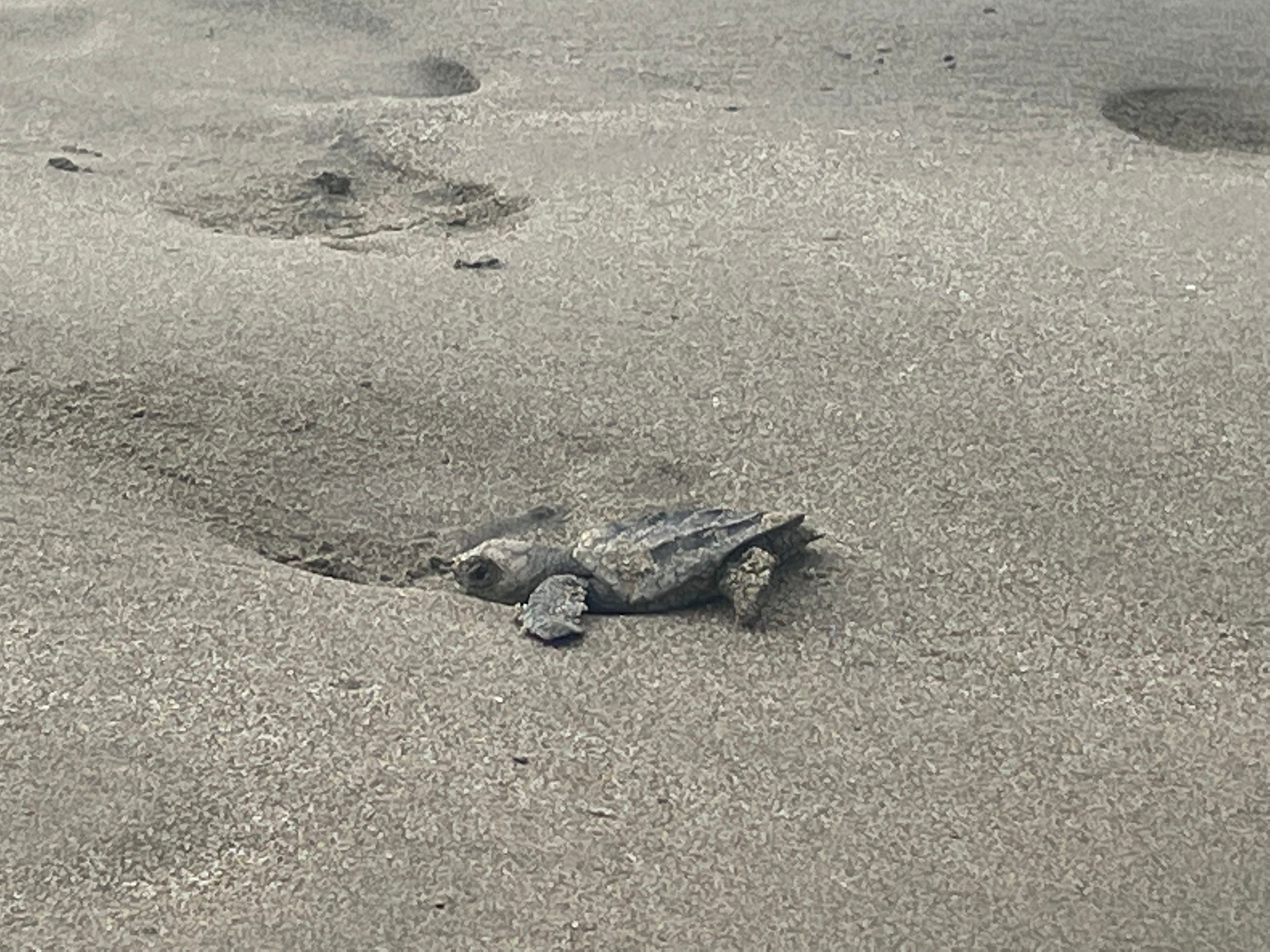 The baby sea turtle 🐢 has a low chance of surviving but a better chance if crawls towards the open ocean. 🌊